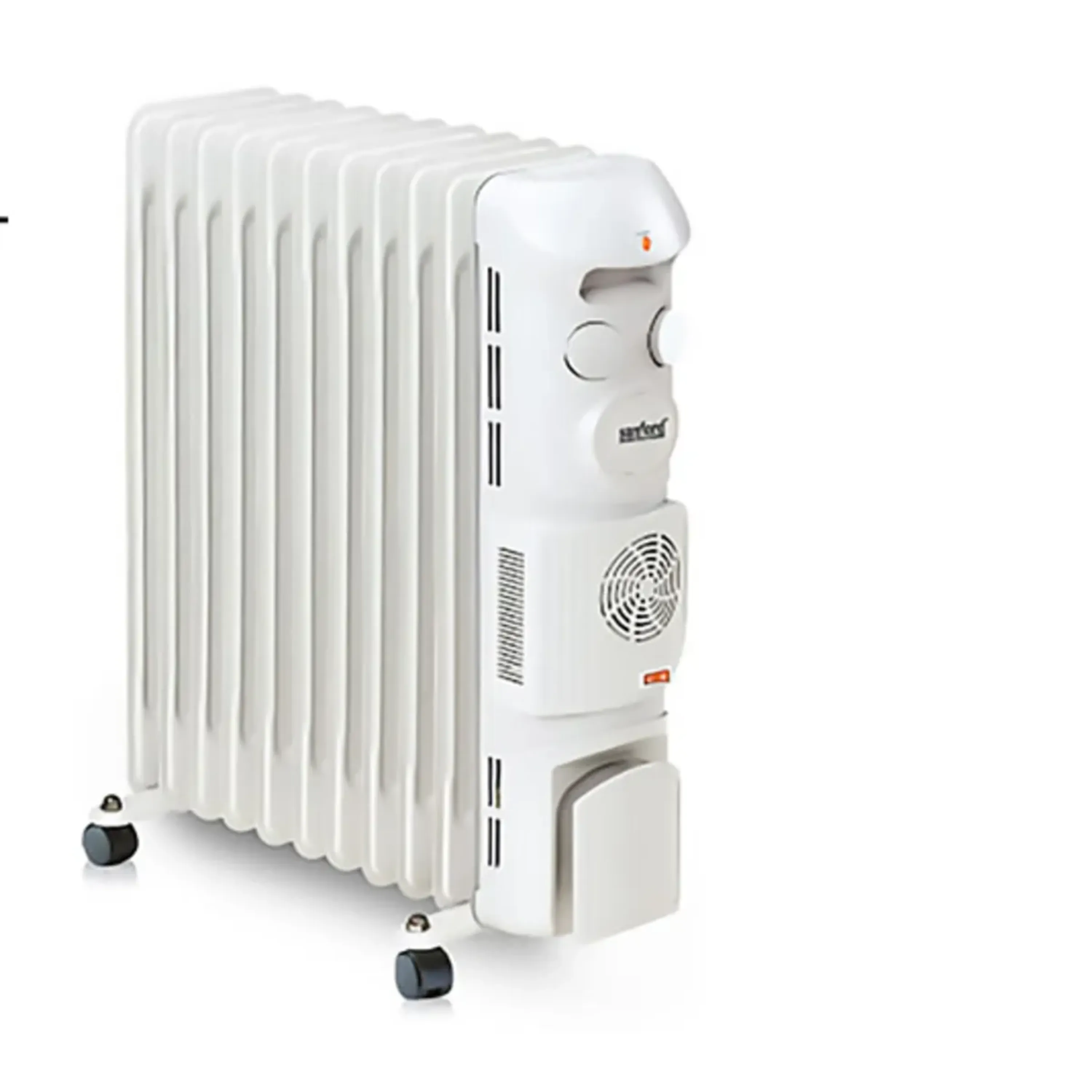 بررسی تخصصیویژگیهای محصول:دارای تنوع 13 پرهدارای ترموستات قابل تنظیمدارای تنظیم توان حرارتیدارای عملکرد فن میباشددارای چراغ نشانگردارای جایگاه جمع کردن سیمدارای کلید خاموش و روشندارای سیستم روغنیدارای دستگیره جهت حمل آساندارای چرخ جهت جابجایی اساننحوهی عملکرد شوفاژ برقی سانفورد مدل SF1212OH به این صورت است که درون محفظه ی رادیاتور به جای آب از روغن پر شده و ماده ی سیال در این تجهیزات روغن میباشد. با اتصال به برق و روشن شدن دستگاه المنتهای تعبیه شده در کف بدنه داغ شده و گرمای ایجاد شده به روغن درون محفظه منتقل میگردد. روغن گرم به سمت بالا حرکت کرده روغن سرد موجود در لولهها به قسمت پایینتر و نزدیک به المنتها سرازیر میشود. این جابه جایی دائم در حال چرخش بوده و روغن گرم با طی کردن مسیر گرمای حال را به بدنه منتقل کرده وسرد میشود و دوباره به همان ترتیب به قسمت پایینی دستگاه حرکت میکند. با ادامهی این چرخه رادیاتور گرمای مورد نظر محیط را به فضای داخلی منتقل میکند. و پس از مدت زمان کوتاهی دمای اتاق به درجه دلخواه کاربر میرسد. به منظور کنترل دمای محیط و جلوگیری از اتلاف انرژی مجهز به ترموستاتهای دقیقی هستند که دما اتاق را شناسایی کرده و زمانیکه دمای اتاق به حد مطلوب رسید ترموستات دستور قطع المنتها را اعمال میکند بدین ترتیب دستگاه طی مدتی از عملکرد متوقف میگردد. قطع شدن المنتها تا زمانی ادامه دارد که دمای اتاق کاهش یابد، ترموستات دوباره شروع بکار المنتها را اعمال میکند و به این ترتیب دوباره روغن درون محفظه شروع به چرخیدن کرده و گرمای بدست آورده را به فضای داخلی منتقل مینماید.